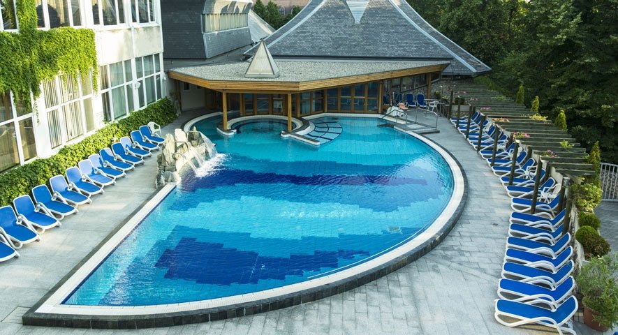 Dans notre hôtel bien-être 4 étoiles le repos en toute insouciance est garanti, que vous arriviez en famille ou avec des amis. Notre complexe bien-être est fier de posséder l’un des complexes aquatiques les plus riches de Hévíz : le bassin de loisirs aquatiques, la piscine, le jacuzzi et les deux bassins thermaux couverts sont complétés par un bassin d’eau thermale pendant la période estivale.