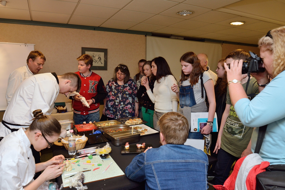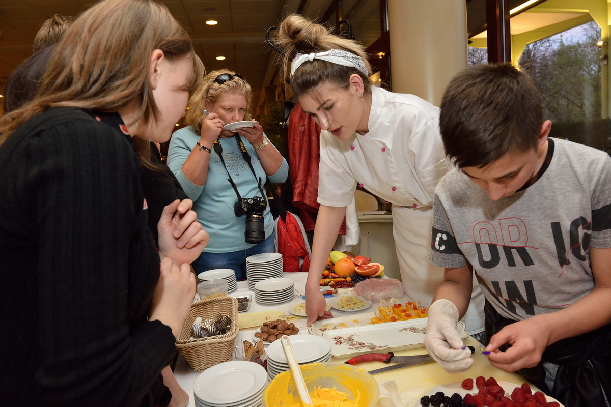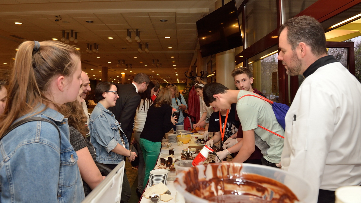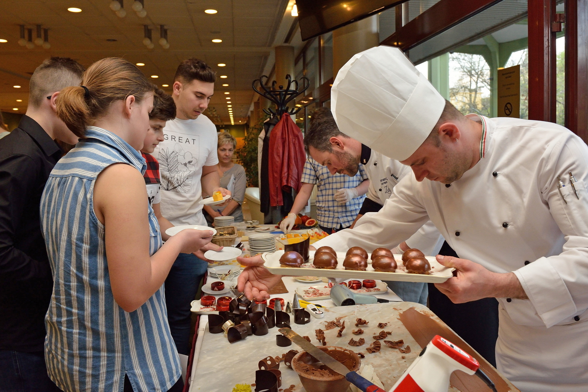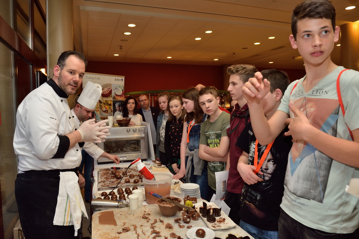 A nagykörúti Radisson Blu Béke Hotel és a Zsolnay Kávéház vezető cukrászmestere, Bechmann György és munkatársai hamar a program legnépszerűbb állomásává varázsolták a mindenmentes süteményeket, csokoládés desszertkülönlegességeket bemutató standot, ahonnan senki sem távozott élmények és édes falatok nélkül. De Altbäcker György, a Danubius Hotel Flamenco konyhafőnöke is annyira felkeltette figyelmüket, hogy csak nehezen tudták elhagyni a konyhát. Kíváncsiak voltak, hol és hogyan készül napi több ezer péksütemény a szálloda vendégeinek, és milyen speciális, nagy teljesítményű konyhai berendezések teszik lehetővé, hogy akár egy négyszáz fős afgán lakodalmi násznép ételre vonatkozó kívánságait is maradéktalanul teljesíteni tudják egy este alatt.