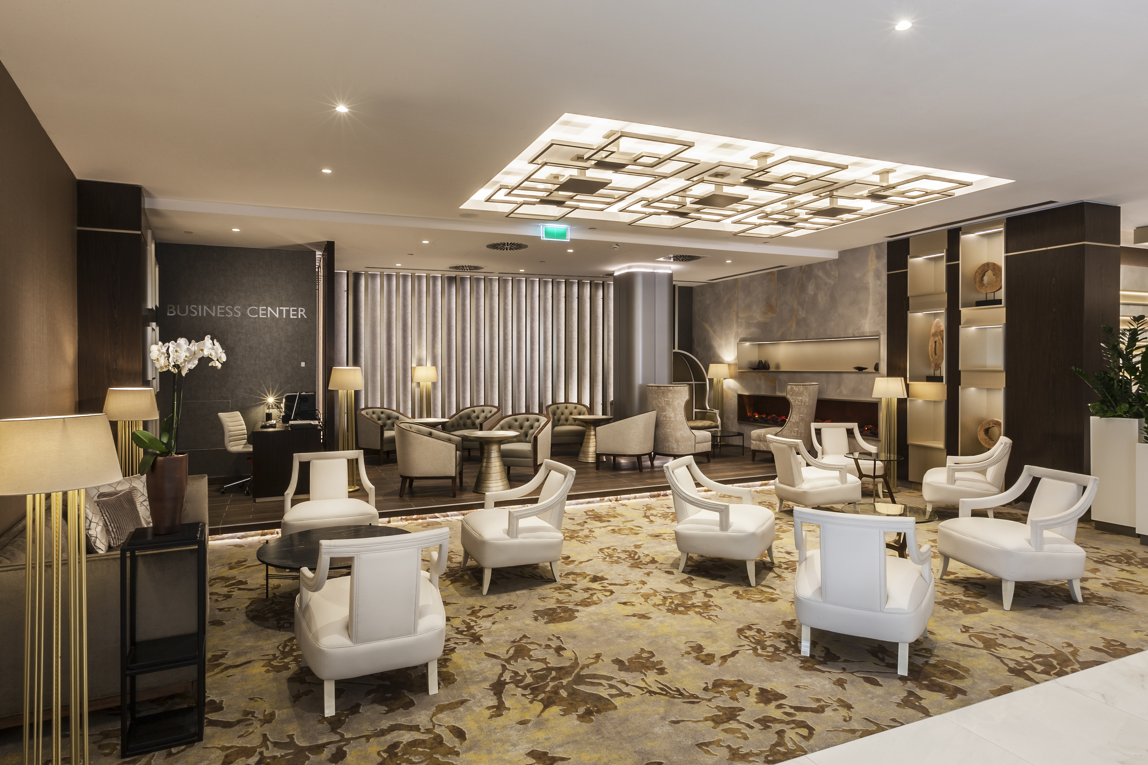 A lobby a szálloda szíve. Közösségi tér, ahol a recepción intézzük ügyes-bajos dolgainkat, ahol várakozunk, beszélgetünk, információt gyűjtünk, vagy netán dolgozunk. Partnereket fogadunk, üzleti találkozót ütünk nyélbe, vagy ahova csak úgy beülünk egy finom kávéra vagy sütire. A Béke megújult, megszépült lobbyja mindent tud. Gyönyöködtet, marasztal, kikapcsol és kényeztet. Átölel világos színeivel, rafinált fényeivel és kényelmes bútorzatával. Minden zegzuga mást tud, másra való, ugyanakkor mégis egységes és összefüggő a szemmel szinte be sem látható tágas tér. A lobby-kávéház-recepció együttese nemcsak vizuálisan tűnik nagyobbnak a réginél, hanem ténylegesen meg is növekedett, ugyanis, néhány iroda elköltöztetésével egy tágas „nappalit” nyertek, amely leginkább megbeszélések résztvevőinek, vagy elutazásra váró vendégeknek vonzó.