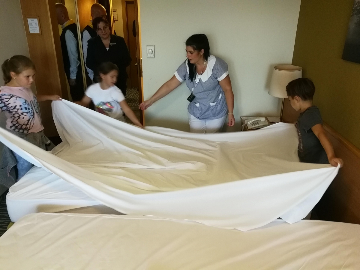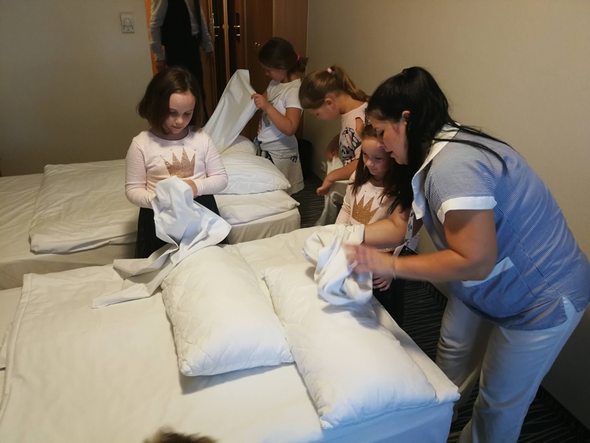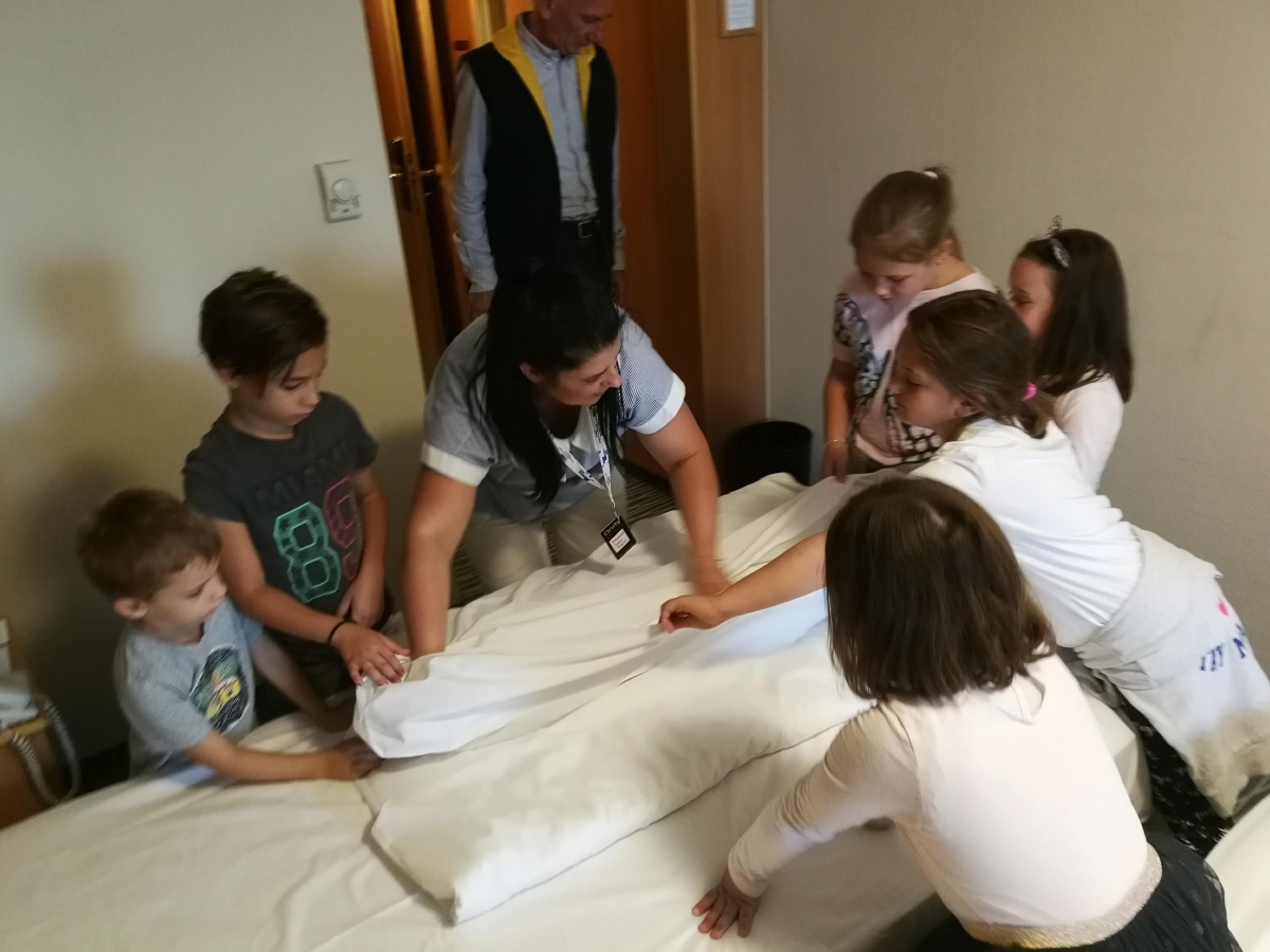 Többek között megtapasztalhatták, milyen a csomaghordás, az ágyneműcsere, bepillantottak a mosodába. Az egyes szállodák önmagukra szabták a programot és változatos feladatokat találtak ki az „új munkatársaknak”. Volt, ahol a cukrászatban közös kókuszgolyó gyúrás és csokis mini desszert készítés foglalta le a gyerekeket, míg a konyhán a zöldségek felismerése után együttes rántottasütésen tehettek tanúbizonyságot főzési képességeikről. Az asztalok megterítése után egy ebéddel, kvízzel és rengeteg ajándékkal zárult az esemény.