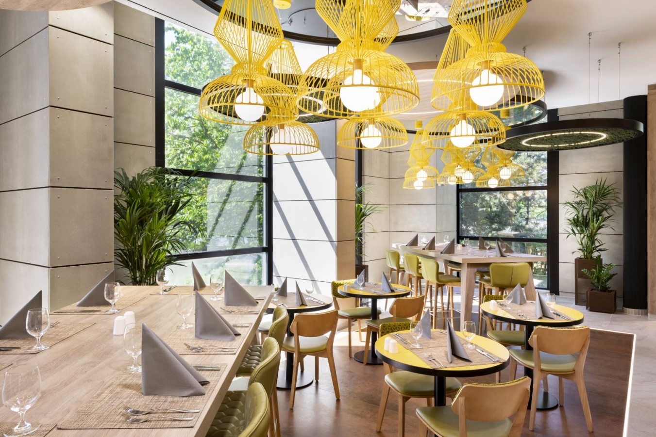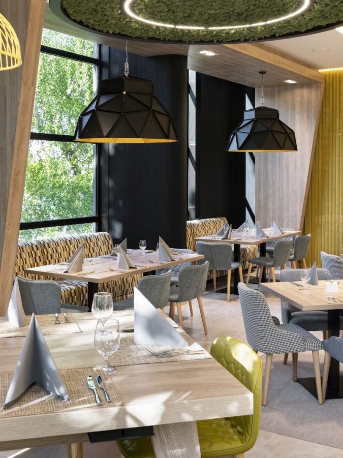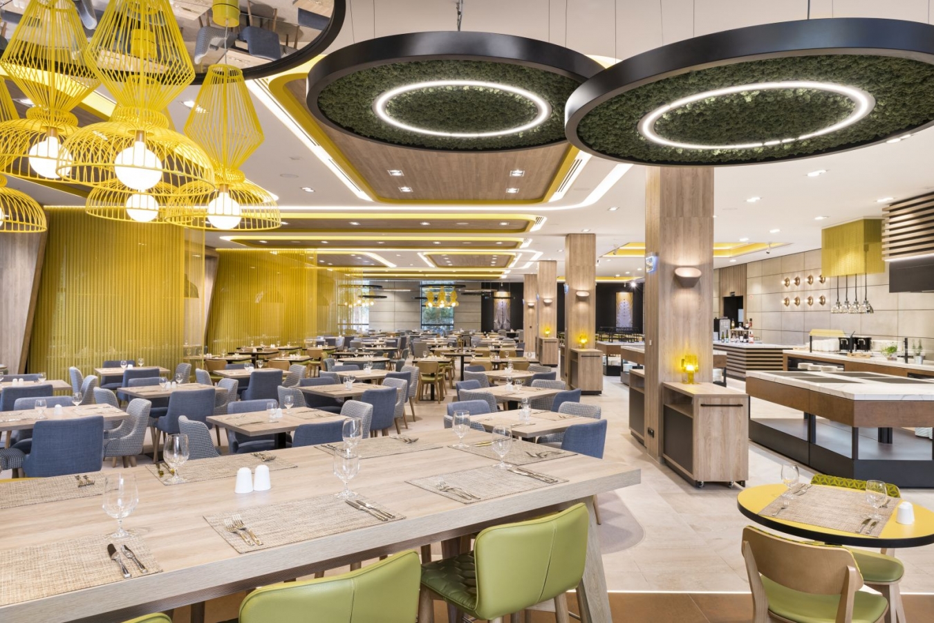 A közösen 500 fő befogadására alkalmas étterem a terasszal kiegészülve a felújítás után egy új, sokoldalú és érdekes helyszínt kapott. A nagy tér dizájnos láncfüggönyökkel könnyen szekcionálható, de az összefüggő hatás megmarad. A hotel vezetése szeretné kihasználni az új terek adta lehetőségeket, így kültéri rendezvények lebonyolításában és élőzenés estekben is gondolkodnak.