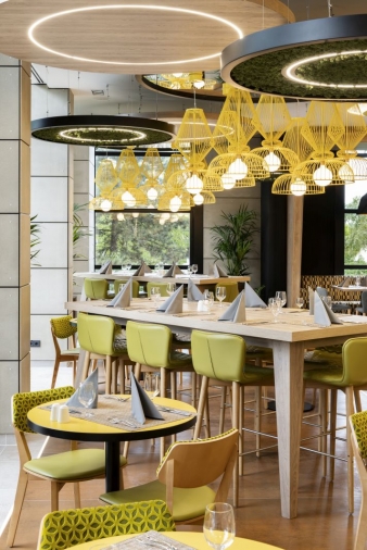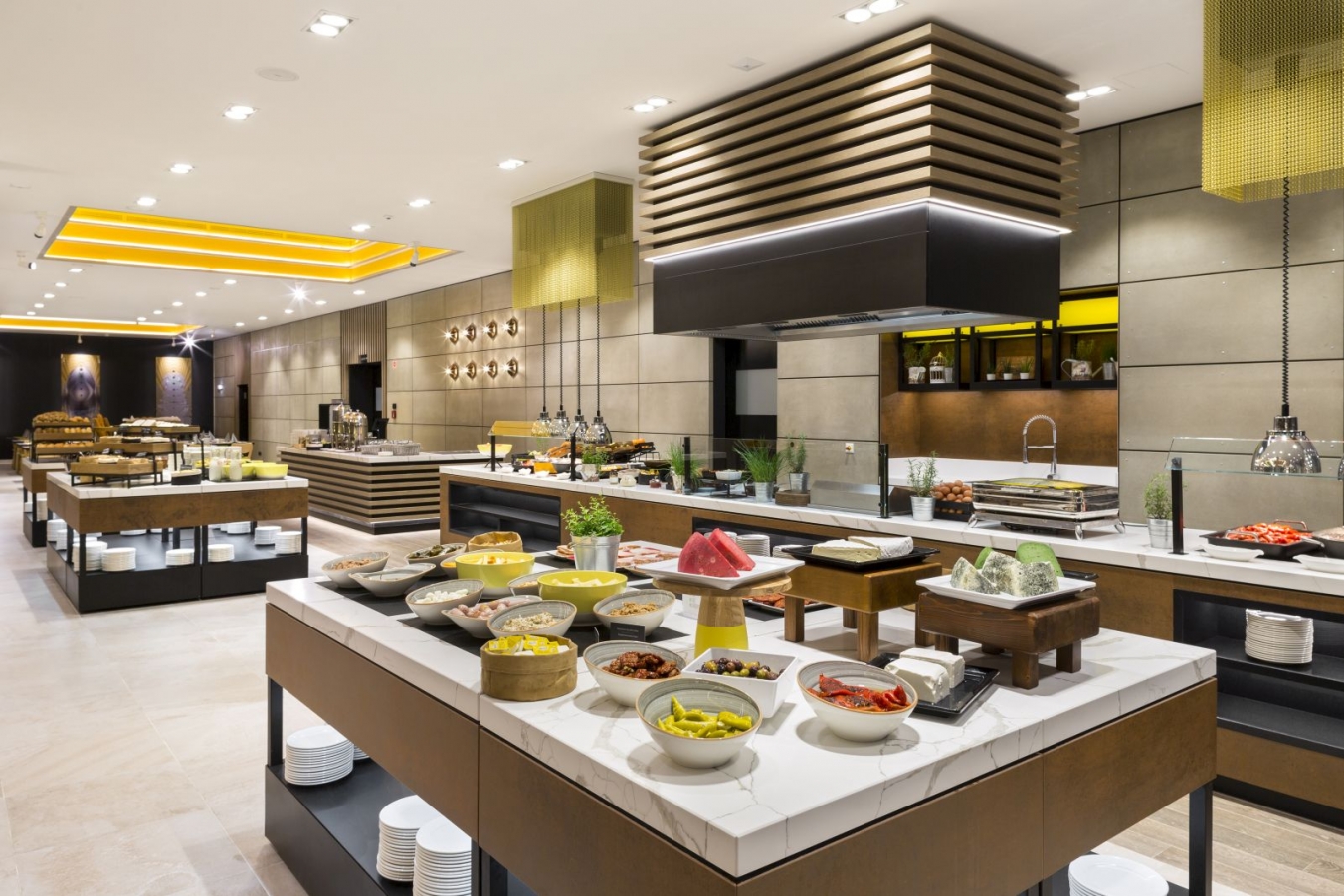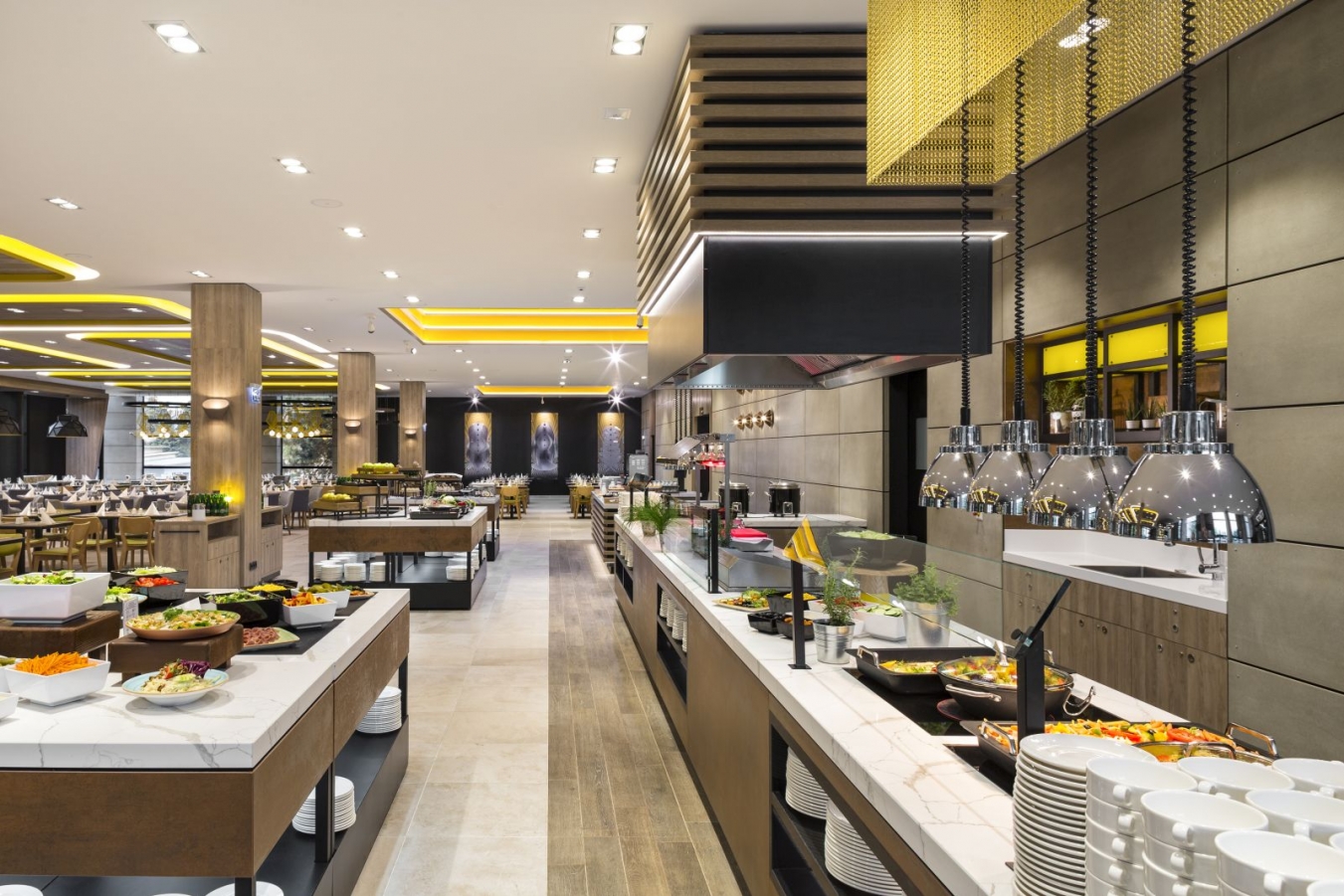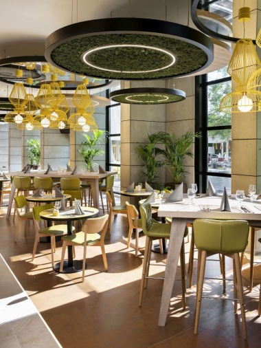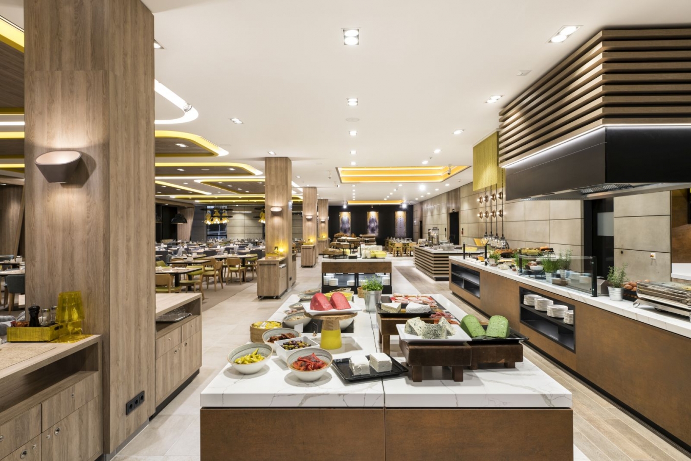 A közösen 500 fő befogadására alkalmas étterem a terasszal kiegészülve a felújítás után egy új, sokoldalú és érdekes helyszínt kapott. A nagy tér dizájnos láncfüggönyökkel könnyen szekcionálható, de az összefüggő hatás megmarad. A hotel vezetése szeretné kihasználni az új terek adta lehetőségeket, így kültéri rendezvények lebonyolításában és élőzenés estekben is gondolkodnak.