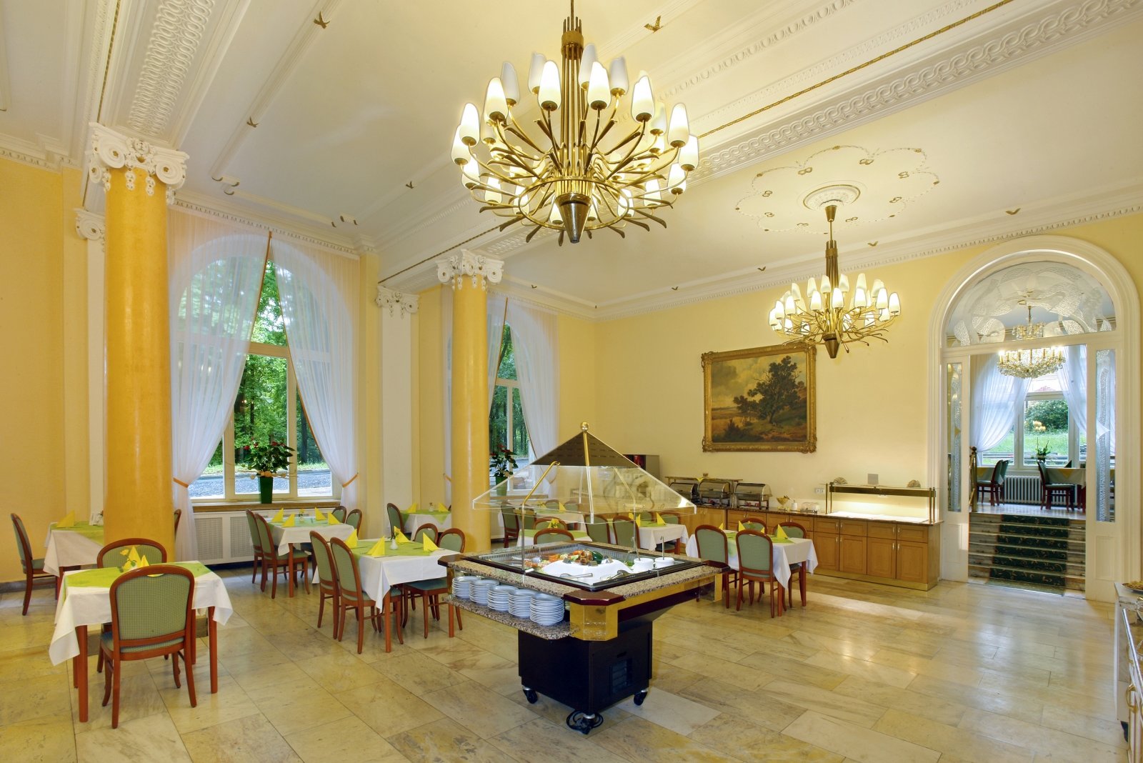 Gyönyörű parkerdei környezet és közvetlen kapcsolat a fürdőkomplexum Margareta és Palladio épületeihez – a neobarokk oszlopcsarnok és a zenélő szökőkút közelében található elegáns, háromcsillagos Spa Hotel Svoboda tökéletes wellness élményt nyújt vendégeinek. A gyógyfürdő vendégei fedett sétányon közlekedhetnek az épületek között. A szálló neve, a „svoboda” szó szabadságot jelent: gyógyüdülésre érkező vendégeink nálunk megszabadulhatnak a modern városi élettel járó stressztől és feszültségtől. Dőljön hátra és kapcsolódjon ki a felújított Palladio Fürdőközpontban, élvezze a marienbadi szálló saját, természetes Erdő-gyógyforrásából merített vizet felhasználó ásványvizes fürdőit és ivókúráit! Étterem, bár, könyvtár, biliárdterem és gyermeksarok – a Svoboda szállóban minden korosztályra gondolunk. Hagyja maga mögött a mindennapi gondokat, legyen a vendégünk egy marienbadi üdülés keretében!